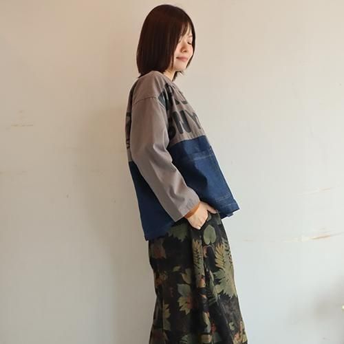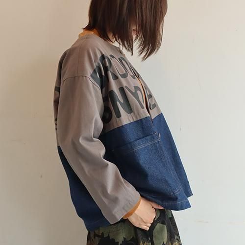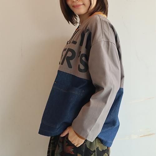 ・上身頃はナチュラルなコットン、下身頃はデニム切替で遊び心をプラス♪