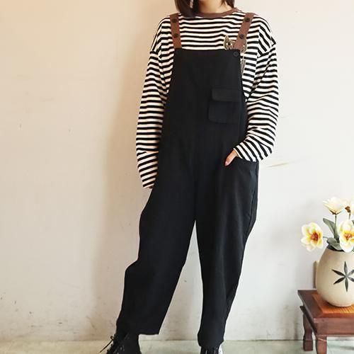 リラックス感がありながらも、すっきり見えるシルエットのサロペット。