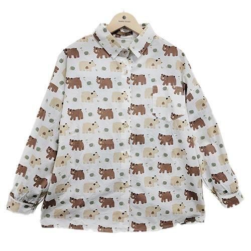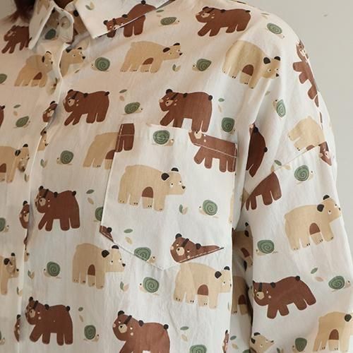 愛らしいくま柄が目を引く、遊び心ある長袖シャツ。