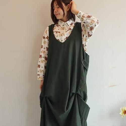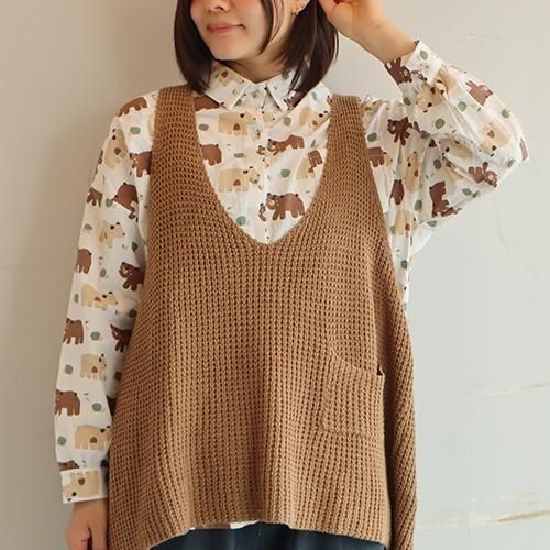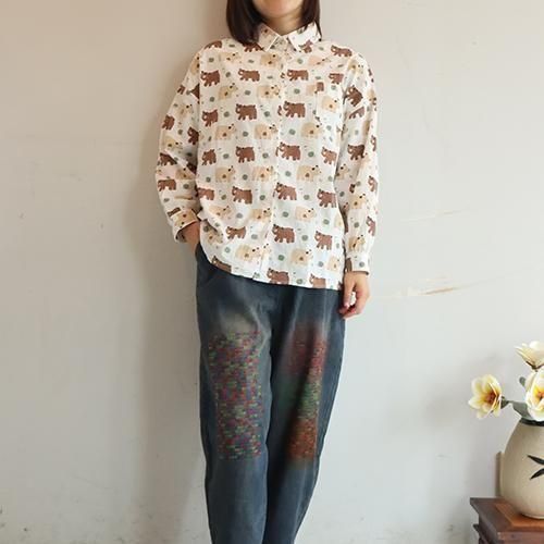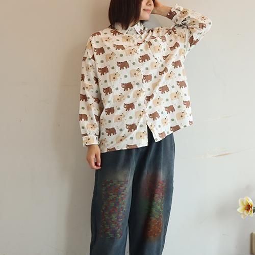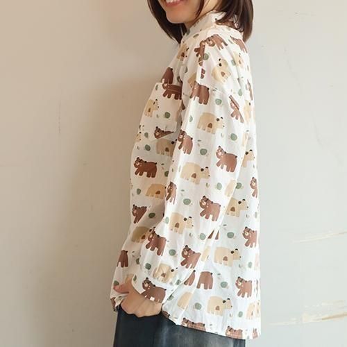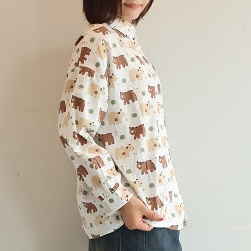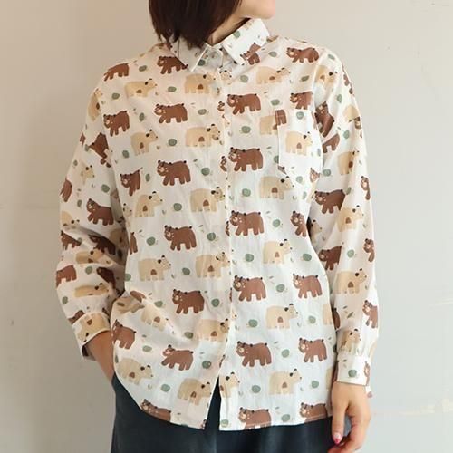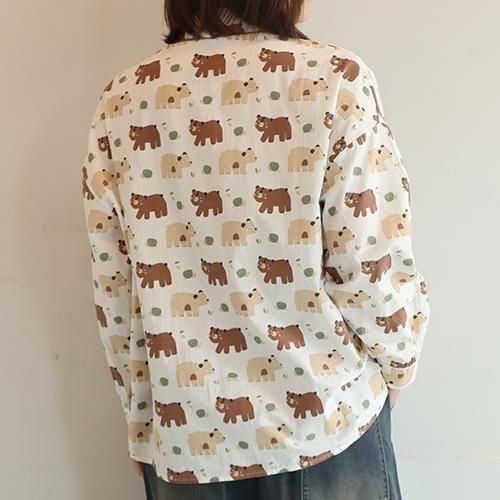・襟付きできちんと感をプラスしつつ、ほっこりとしたくま柄が可愛らしさを演出。