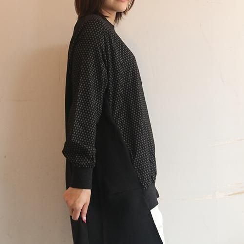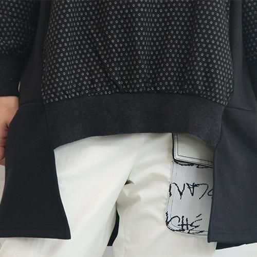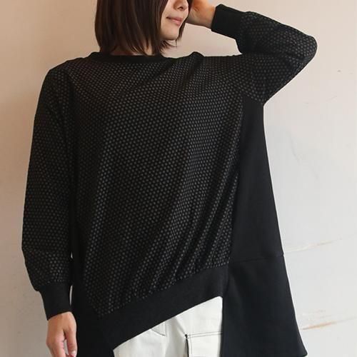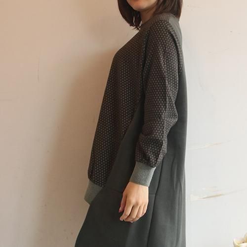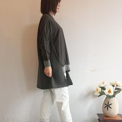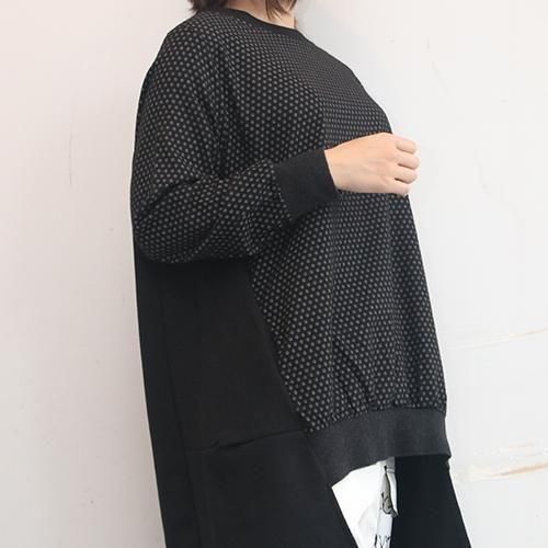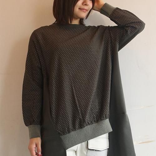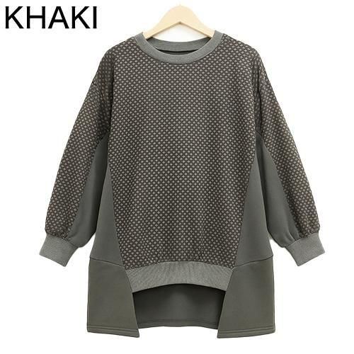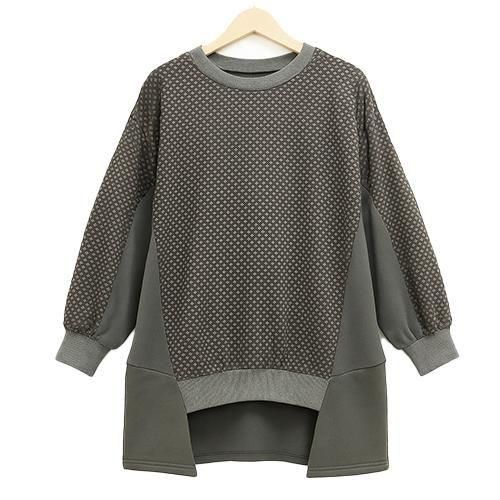 異素材の切替デザインが目を引く大人のプルオーバー。