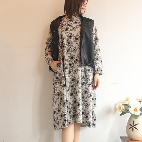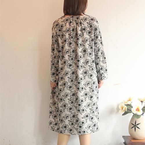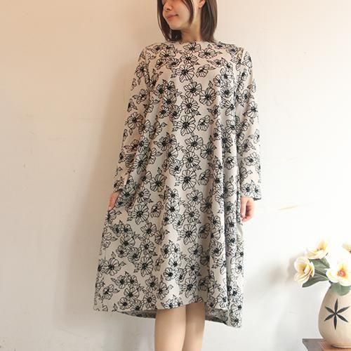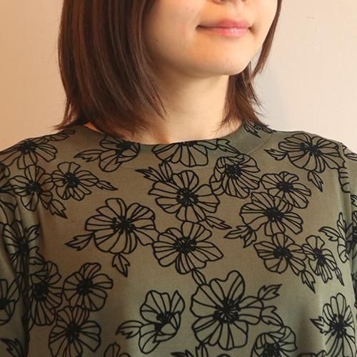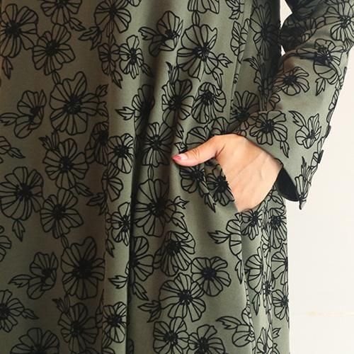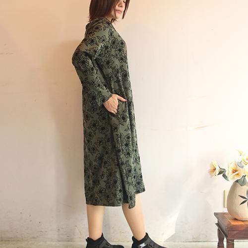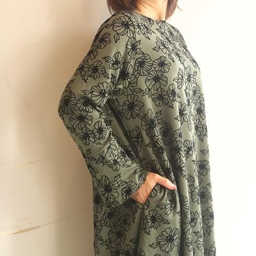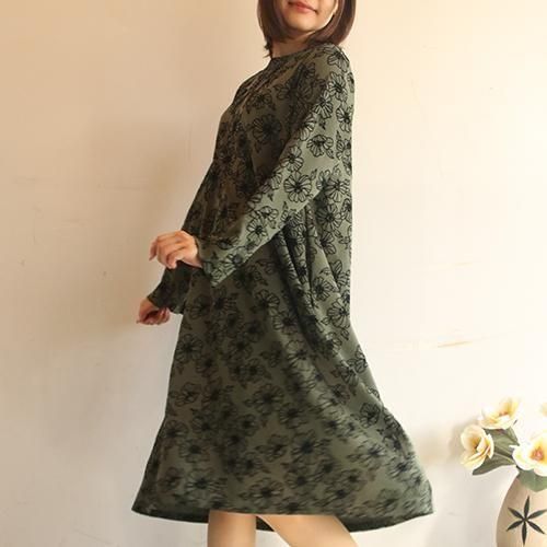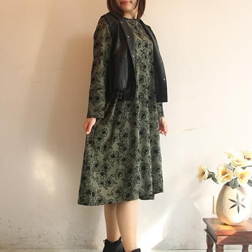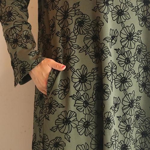 気になる体型をさりげなくカバーしながら、華やかさも演出できるフロッキープリントワンピース。