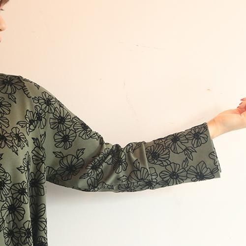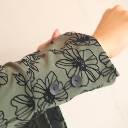 ・立体感あるフロッキープリントで高見え!1枚で着れば主役級に華やか。