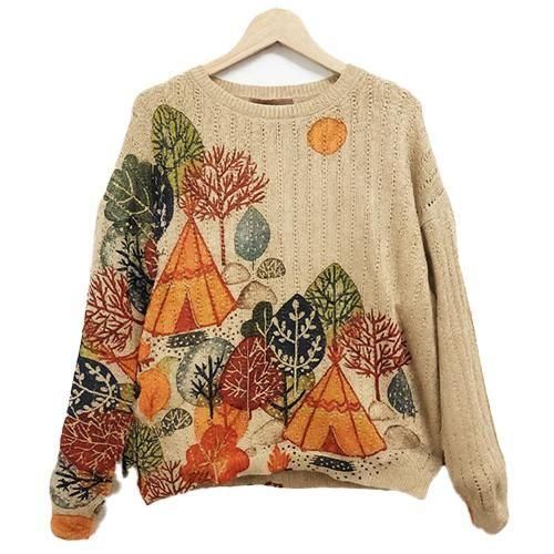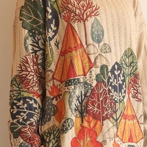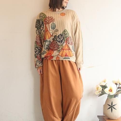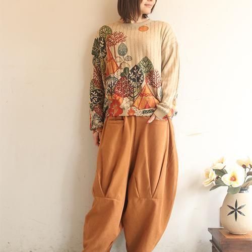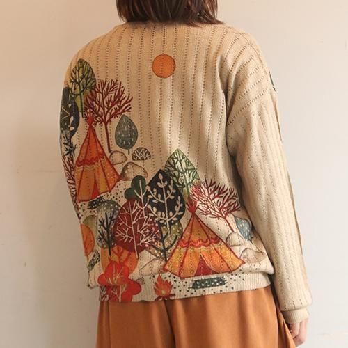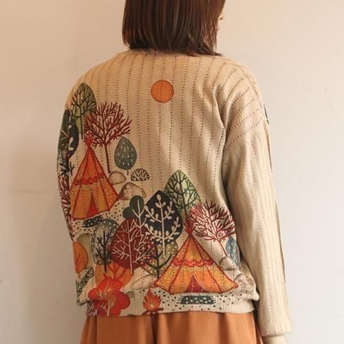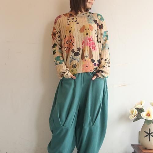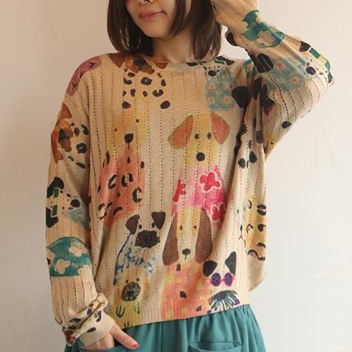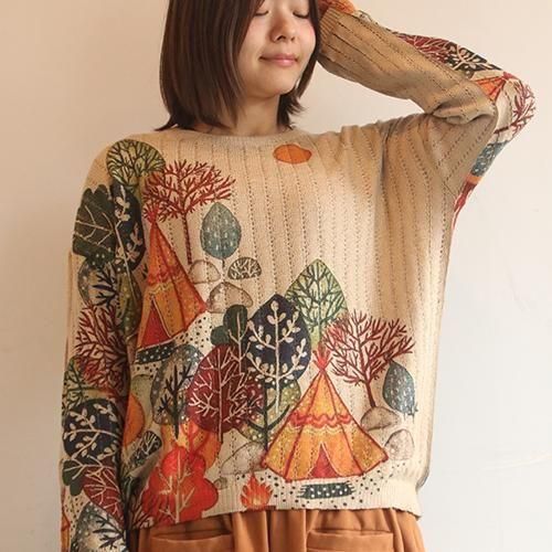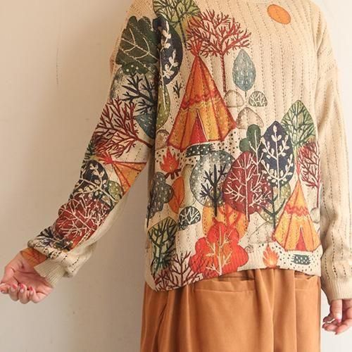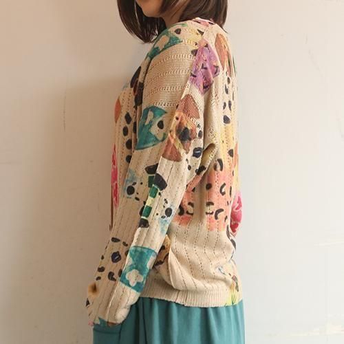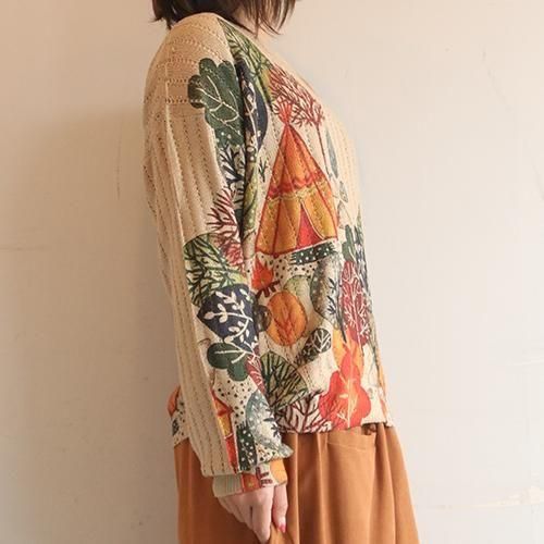 ・カラフルながら落ち着いた色使いのプリント柄が目を惹き、1枚でコーデが完成!