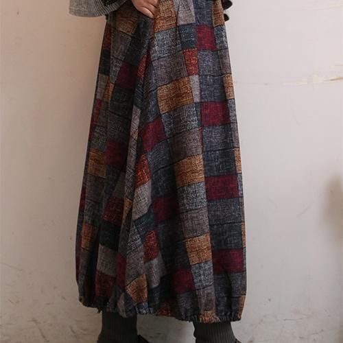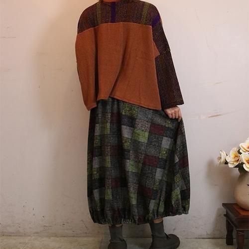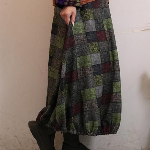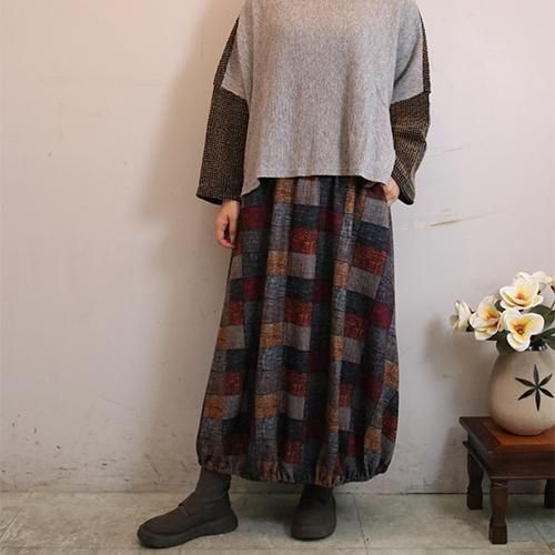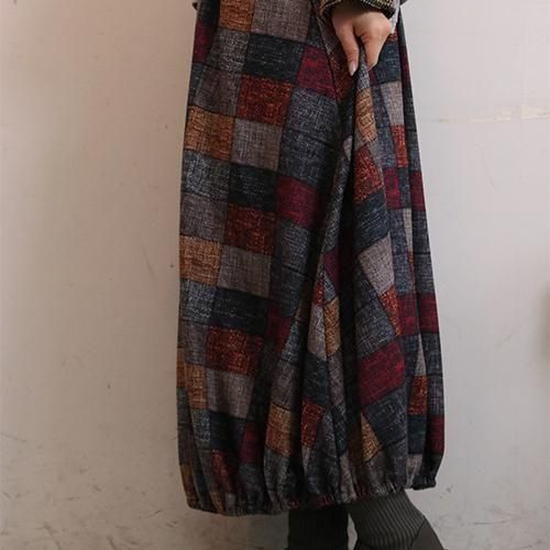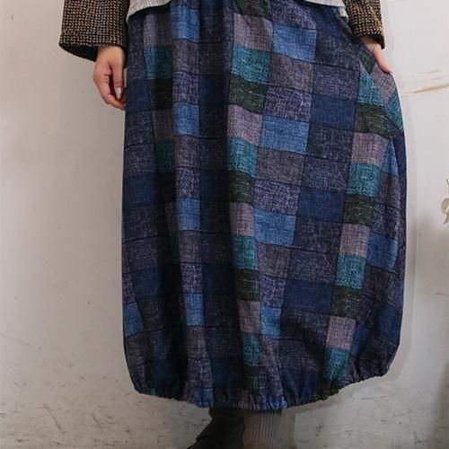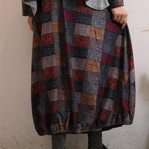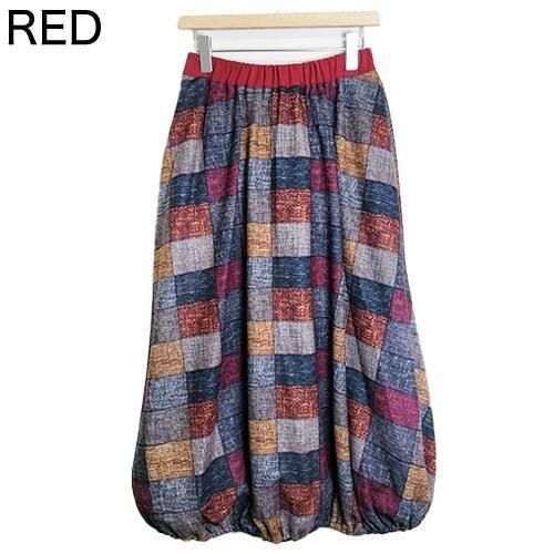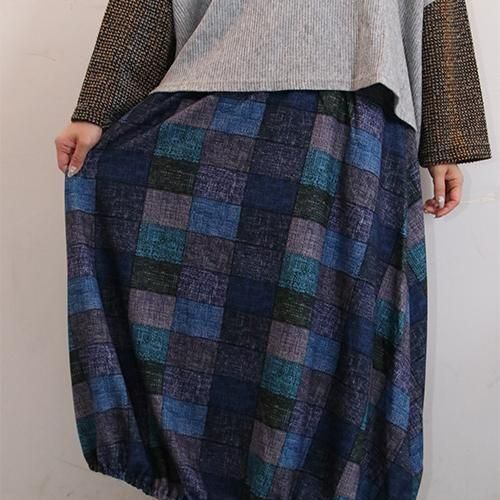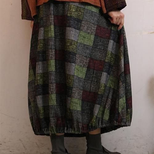 チェック柄バルーンスカート/ふんわりシルエットで体型カバー・ポリエステル素材〈秋冬カラー〉