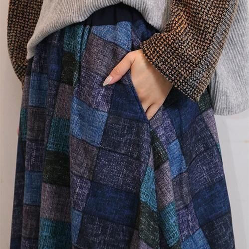 温かみのあるチェック柄がスタイリングの主役になる、大人のためのスカートです。
