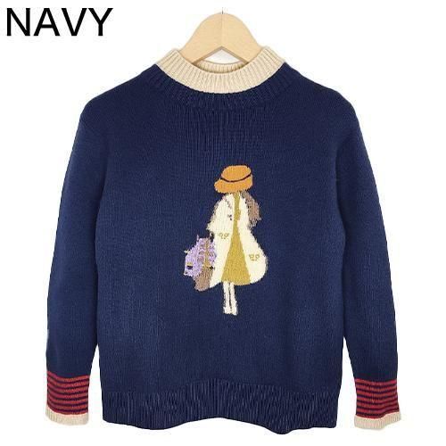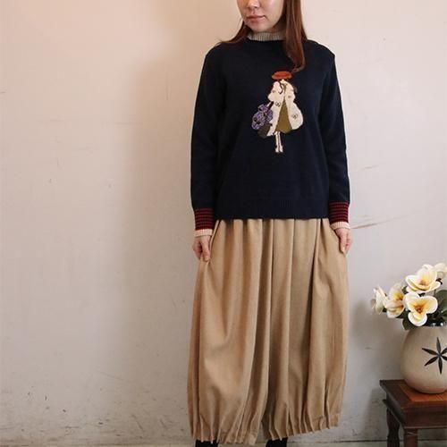 フロント中央にあしらわれたキャラクターデザインが、冬コーデを一気に華やかにする主役級ニット。