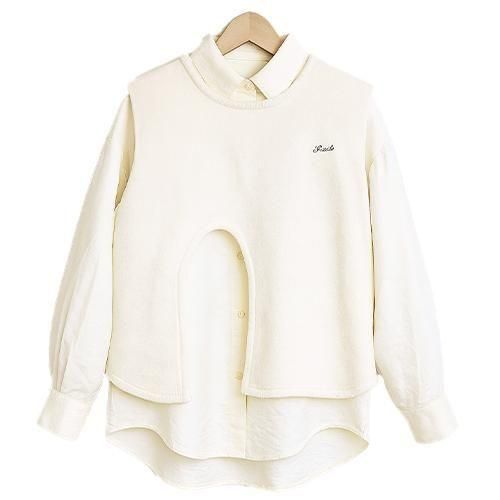 重ね着のバランスに迷わない、シャツとベストがセットになった便利なレイヤードアイテム。