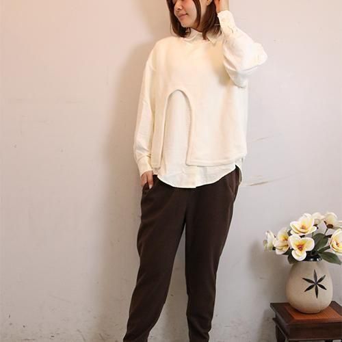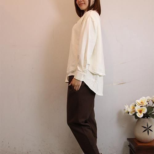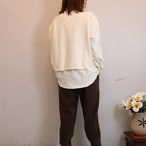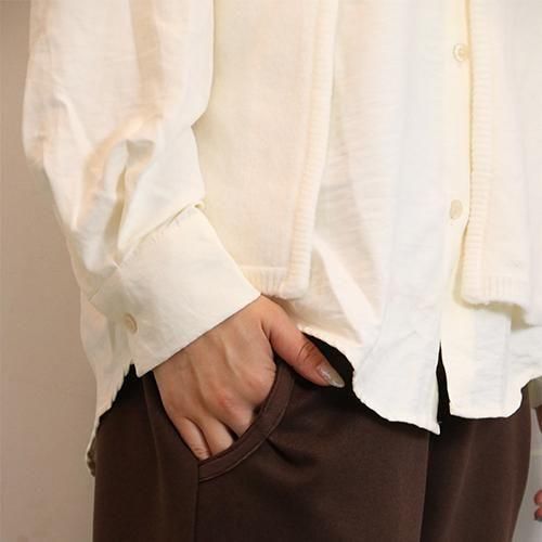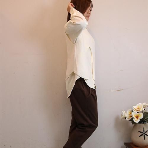 ・シャツは軽やかでニュアンスのあるアイボリー生地を使用し、肌なじみが良い
